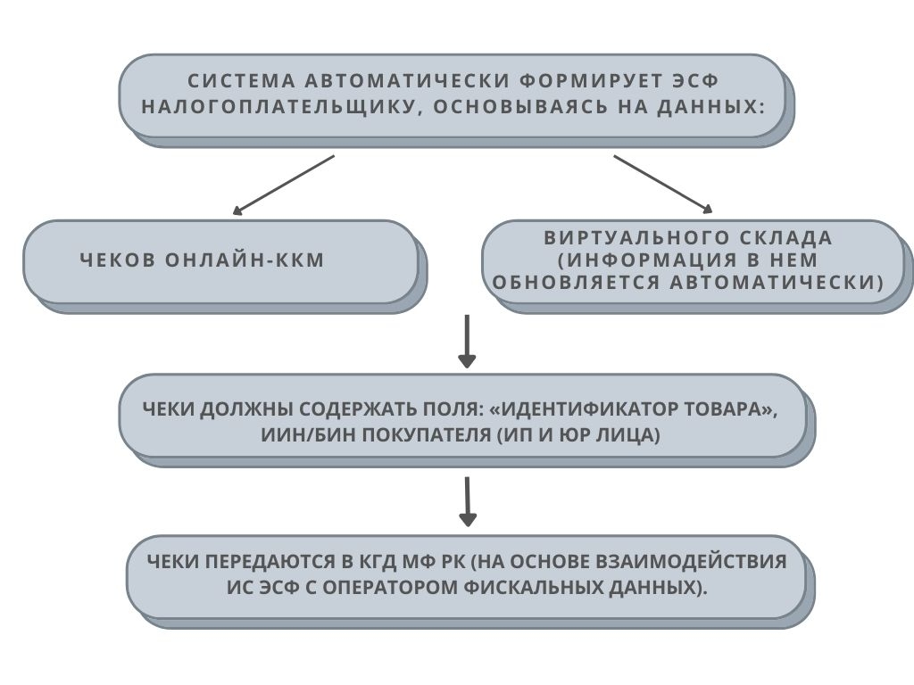 «Кроме того, в качестве временного механизма с 1 апреля налогоплательщикам будет предложена выписка ЭСФ по принципу «step by step» (шаг за шагом), в рамках которого налогоплательщик в ИС ЭСФ указывает номер чека и фискальный признак, а также ИИН/БИН получателя и выбирает проданный товар с Виртуального склада. В этом случае Система автоматически сформирует простую форму ЭСФ для подписания продавцом и отправки покупателю», - сообщили в Пресс-службе КГД.