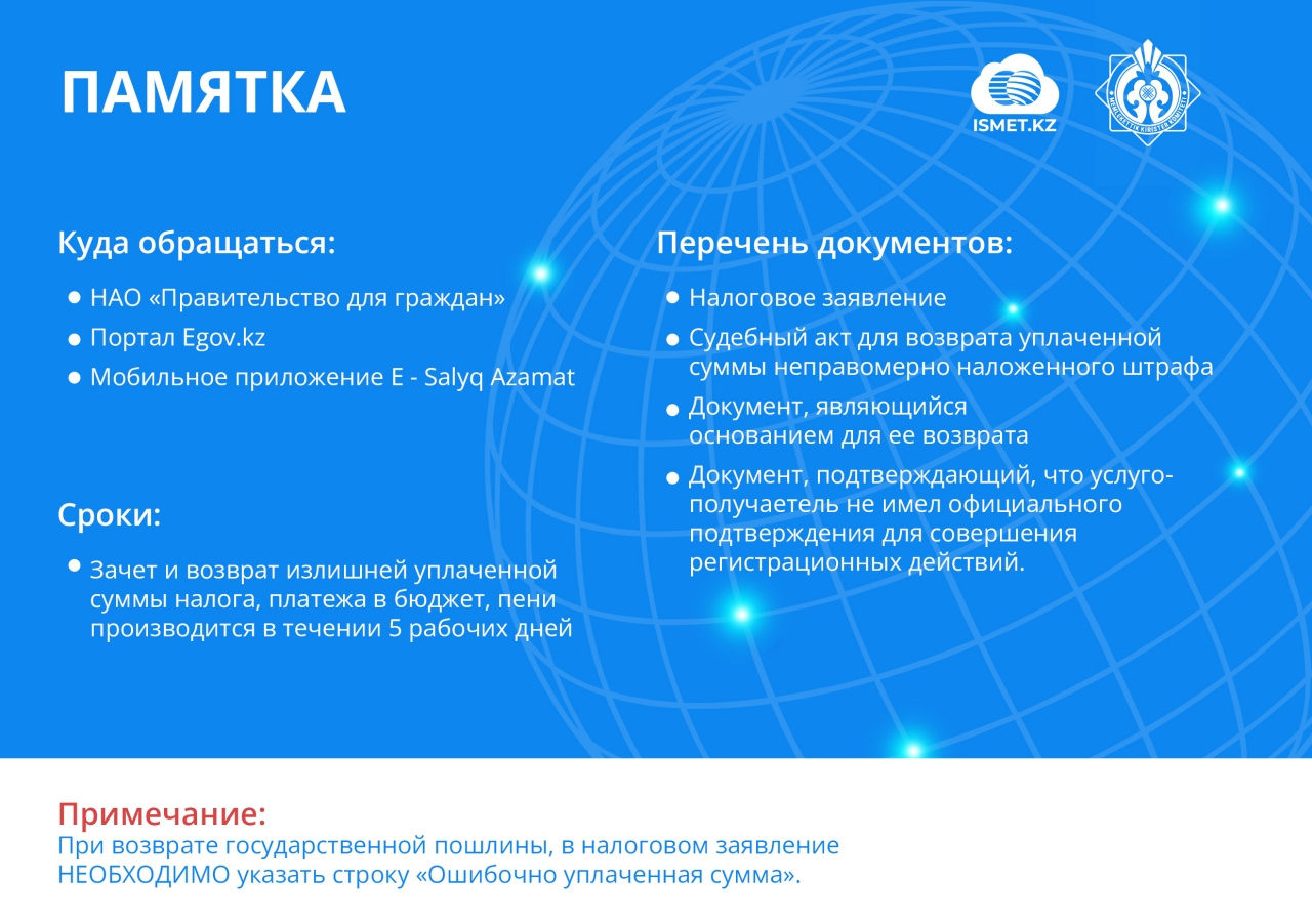 В КГД МФ РК позаботились о налогоплательщиках и выпустили сразу ряд полезных сводок на второе полугодие текущего года. Что нужно знать о налоговом законодательстве, о регистрации и прекращении ИП, зачету и возврату налогов и иных платежей, о применении ККМ, о мобильных переводах и всеобщем декларировании.